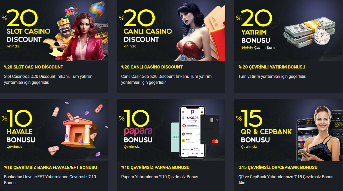 Diğer bonuslar ve kampanyalar, kullanıcıların daha fazla kazanç elde etmelerini sağlar ve bahis deneyimlerini daha heyecanlı hale getirir. Üyeler, bu bonusları kullanarak daha fazla bahis yapabilir, kazançlarını artırabilir ve daha fazla eğlence yaşayabilirler. Nerobet’in sunduğu bonuslar ve kampanyalar hakkında daha fazla bilgi için, siteyi ziyaret edebilir ve promosyonlar bölümünü inceleyebilirsiniz.